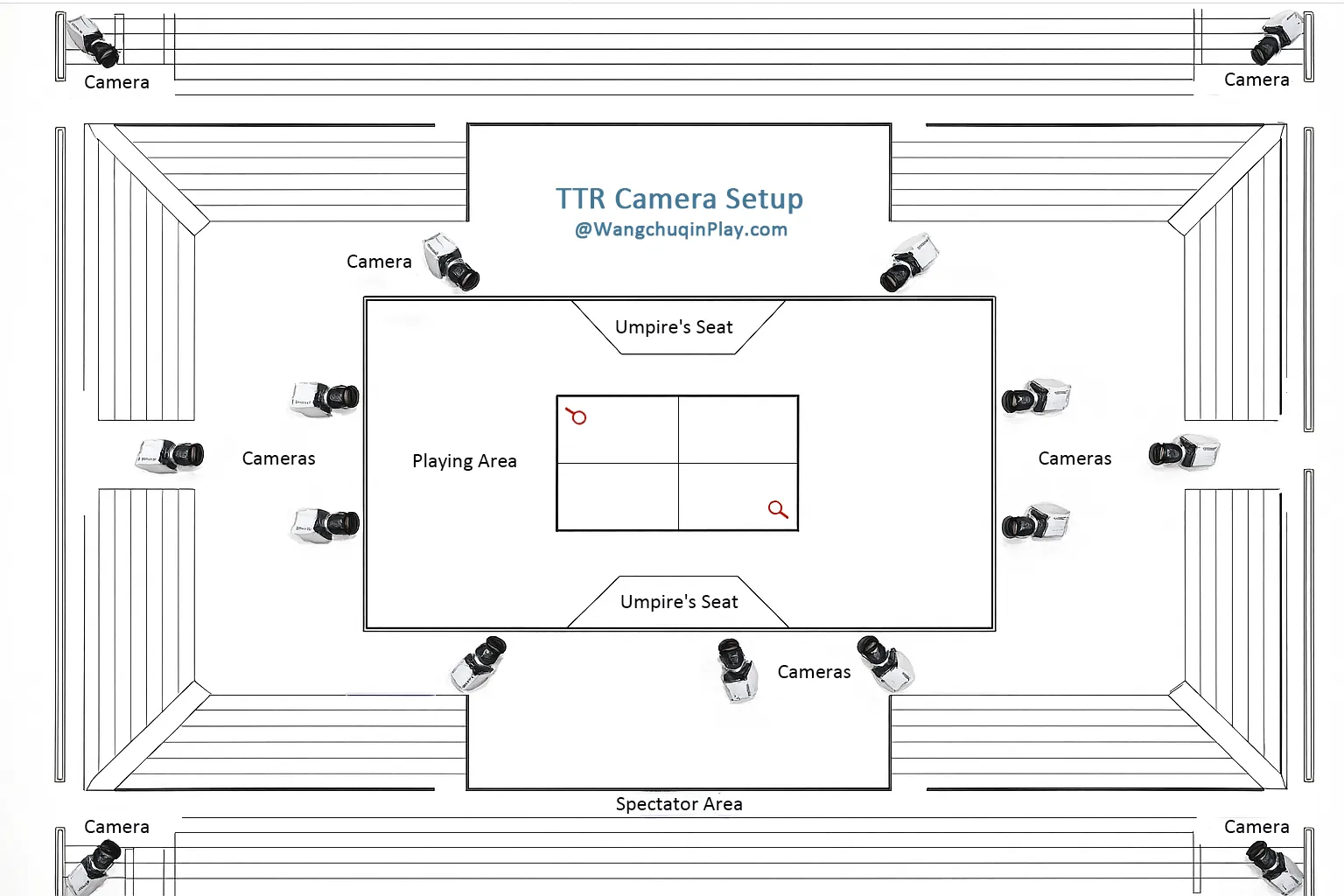 Second, the TTR system uses fixed cameras. From the info I’ve gathered, each side of the table has three main ones. One in the center and two placed about a third of the way in from each sideline. These side cameras seem to be the main source for reviewing hidden serve challenges.