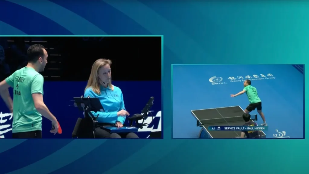 Right now, the system can review several types of situations. These include edge balls, let serves, toss height (must be at least 16 cm), toss angle (can’t go over 30 degrees), and the ball’s visibility during service. It also checks if the toss starts below the table surface or inside the end-line of the table. In some cases, obstruction calls during rallies can also be reviewed.1